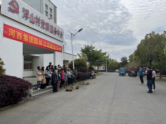 2021年4月20日上午,河西集团园林公司全体党员、团员在公司党支部书记赵康兵的带领下,来到溧水区白马镇浮山村开展主题党日活动。浮山村党总支书记曹安静参加了此次活动。