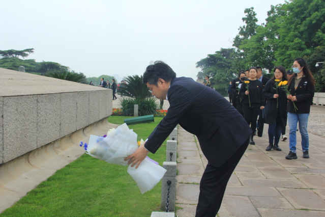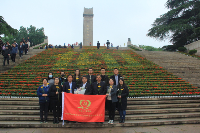 在雨花台烈士纪念碑下,全体人员整齐列队静默肃立,鞠躬默哀,表达对烈士们的崇高敬意和深切悼念之情。党员们面向党旗举起右拳庄严宣誓,重温入党誓词,并集体瞻仰烈士纪念碑,为英雄烈士们献上花束表达敬意。