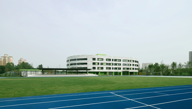 ——项目设计之初秉承给学生提供最大限度活动空间的理念,预留了较多的运动空间。设有4处室外篮球场,1个天然草坪足球场,以及6道300米塑胶跑道,并且是河西地区第一家采用蓝色塑胶跑道的学校!