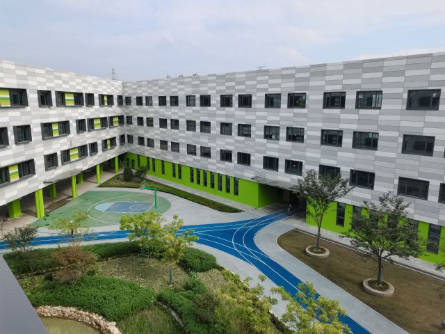 ——部分教学楼屋顶有种植屋面,具有隔热保温功能;空调机均采用热回收装置,节能环保。
