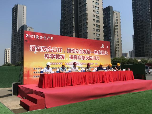 根据2021年“安全生产月”活动计划安排,6月22日上午,河西集团和河西新城管委会在秦新路道路建设工程项目部联合举办夏季高温中暑应急救援演练活动。