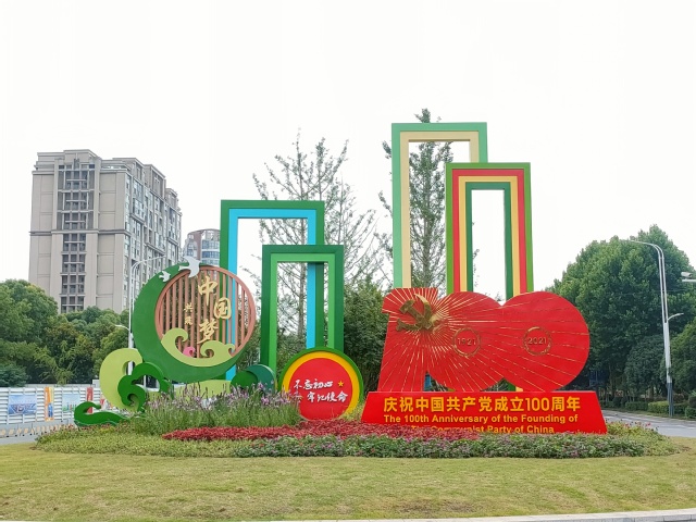 近日,由河西集团南京市园林经济开发有限责任公司设计和施工的“中国梦”建党百年主题景观亮相南京河西新城。