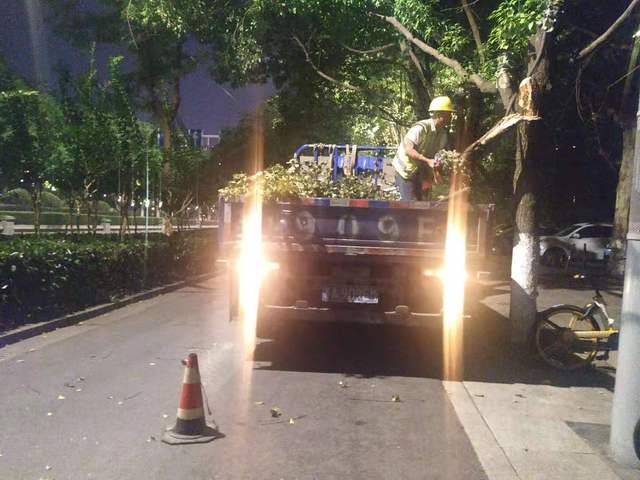 绿化养护队伍,进行24小时值班巡查,对出现的倒伏树木、断枝和破损的市政设施,及时进行消险处理。本次防汛过程中共出动巡查及抢险人员90人次,投入车辆30台次,清除危亭1处,险树5处、断枝4处。不仅保证养护区域绿化植物安全度汛,更保障了居民安全出行。