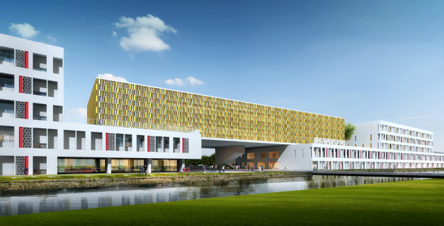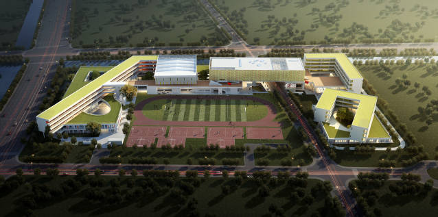 河西南部(5#)九年一贯制学校项目,位于南京市建邺区友谊街以西、邺城路以南,毗邻南京儿童医院。项目总建筑面积90121.66平方米,其中地下建筑面积40237.74平方米,地上建筑面积49883.92平方米;项目整体地下1层,地上5层,建筑高度22.80米。项目规划建设6轨36班小学和10轨30班初中,设计有机动车位861辆,非机动车位1200辆。