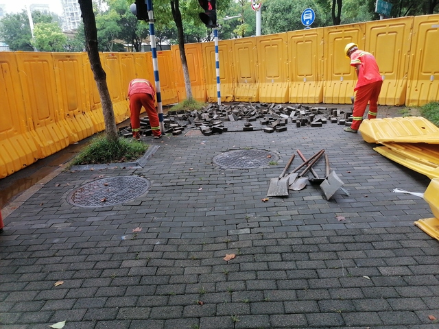 松花江西街是奥体中心片区成熟的住宅以及学校片区道路,两侧行道树栽种的是梧桐树,梧桐树冠高大,夏季遮阴,冬季透光,但是由于根系发达,树根会鼓出来把人行道砖“拱”起,一些路面变得凹凸不平,影响行人通行和道路美观。公司市政养护队伍在动工前,全面细致的排查了该路段,对各类隐患、病害问题进行了分类整理,并“一点一案”,制定整治解决方案。