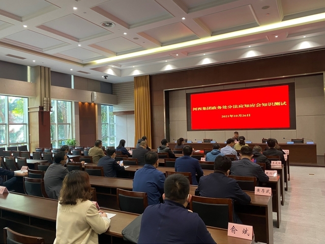 2021年10月26日下午,河西集团监察专员办公室开展警示教育活动,组织集团本部处级干部及下属子企业领导班子成员进行《中华人民共和国公职人员政务处分法》应知应会知识测试。本次测试应到36人,实到34人,2人递交了书面请假材料,测试均分96分,学习宣贯效果良好。