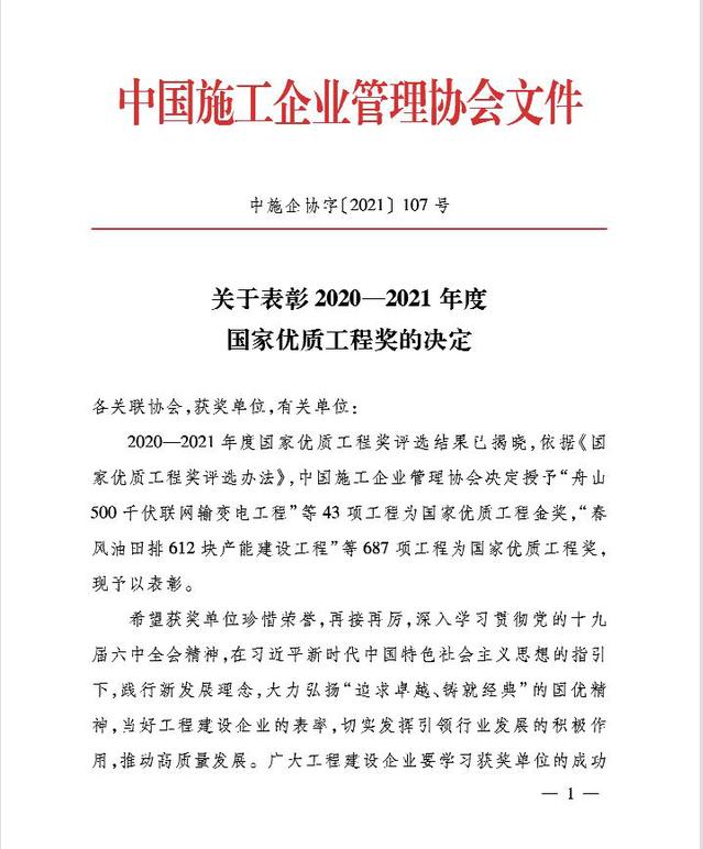 2021年12月6日,中国施工企业管理协会公布2020-2021国家优质工程奖获奖名单,河西集团新城公司所属南京河西工程项目管理有限公司代建的招商银行南京分行招银大厦项目喜获该奖项。国家优质工程奖设立于1981年,是经国务院确认的我国工程建设领域设立最早,规格最高,跨行业、跨专业的国家级质量奖。