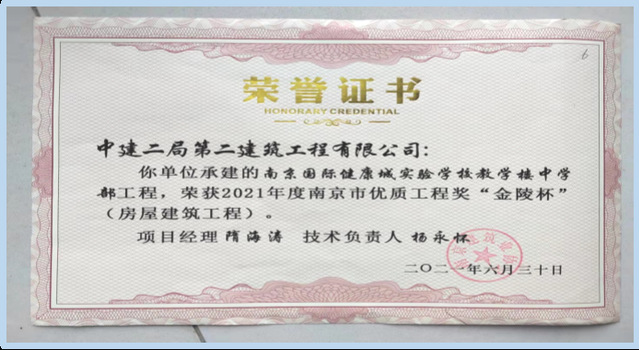 2021年12月6日,中国施工企业管理协会公布2020-2021国家优质工程奖获奖名单,河西集团新城公司所属南京河西工程项目管理有限公司代建的南京国际健康城实验学校项目喜获该奖项。国家优质工程奖设立于1981年,是经国务院确认的我国工程建设领域设立最早,规格最高,跨行业、跨专业的国家级质量奖。